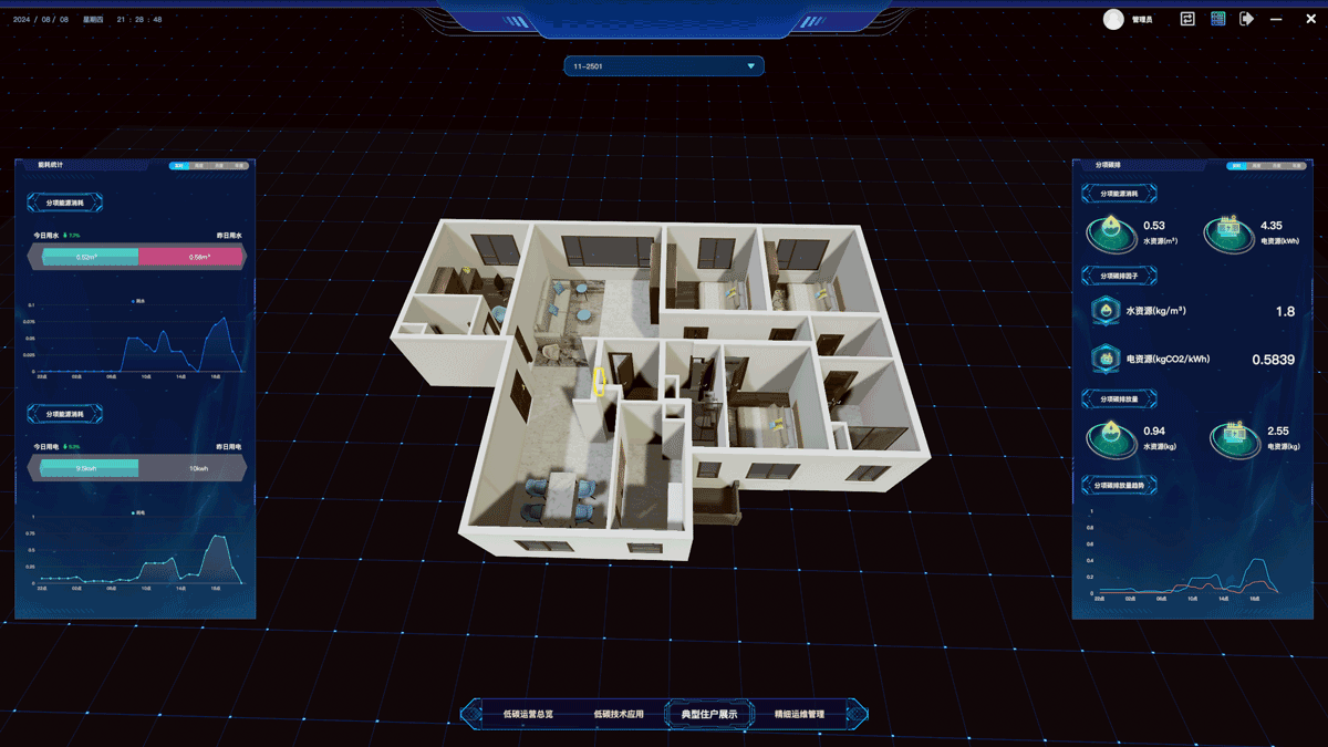 低碳典型住户技术应用数据接入、能耗与碳排放对比展示